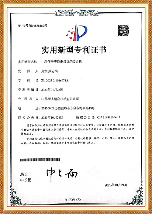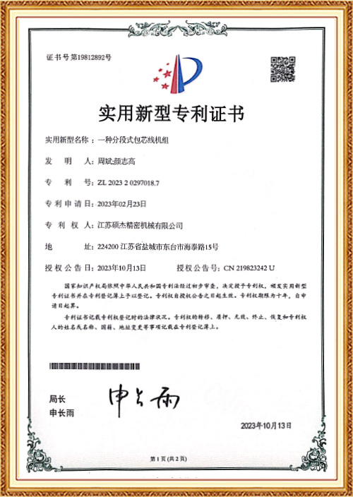 Udviklede den første Three Core Back Twisting Stranding and Taping maskine til at løse kundens procesproblemer i højfrekvent snoning. Snoningen, plus dens egen 100 % tilbagedrejningseffekt, gør den originale wiretest ydeevne bedre.